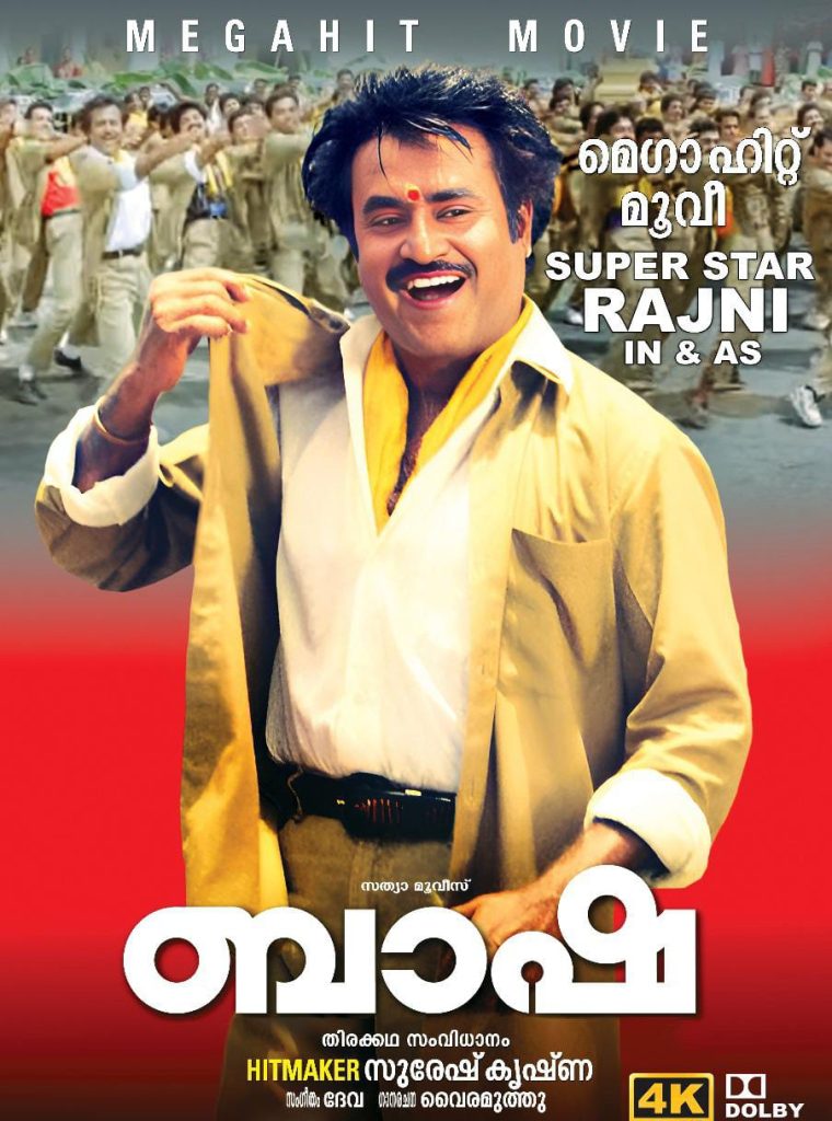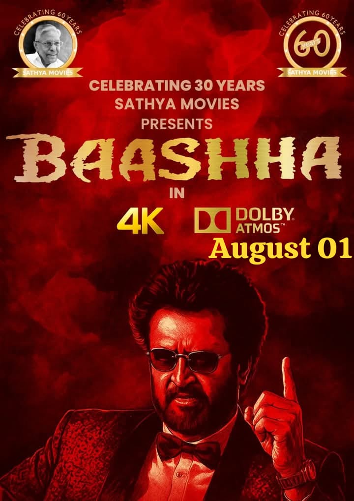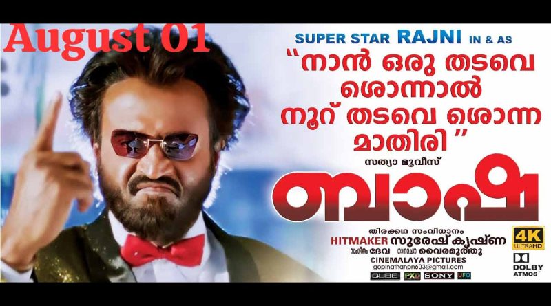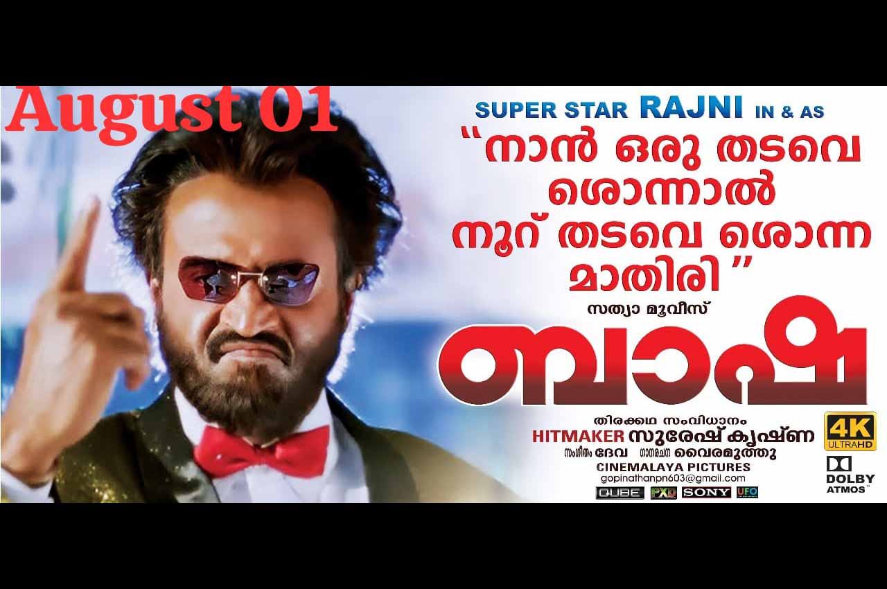രജനീകാന്തിന്റെ സൂപ്പർ ഹിറ്റ് സിനിമയായ “ബാഷ” 4K അറ്റ്മോസിൽ ഈ വരുന്ന ഓഗസ്റ്റ് 1 ന് കേരളത്തിൽ റീ റിലീസിങ്ങിന് ഒരുങ്ങുകയാണ്. സുരേഷ് കൃഷ്ണയാണ് ചിത്രത്തിന്റെ തിരക്കഥയും സംവിധാനവും നിർവഹിച്ചിരിക്കുന്നത്. ഈ ചിത്രം സിനിമാലയ പിക്ച്ചേഴ്സും നിസാർ മൂവീസും ചേർന്ന് പ്രദർശനത്തിന് എത്തിക്കുന്നു.