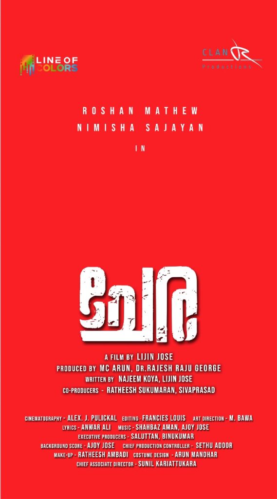 റോഷൻ മാത്യു- നിമിഷാസജയൻ കേന്ദ്ര കഥാപാത്രങ്ങളാകുന്ന ചേര പ്രദർശനത്തിന്.