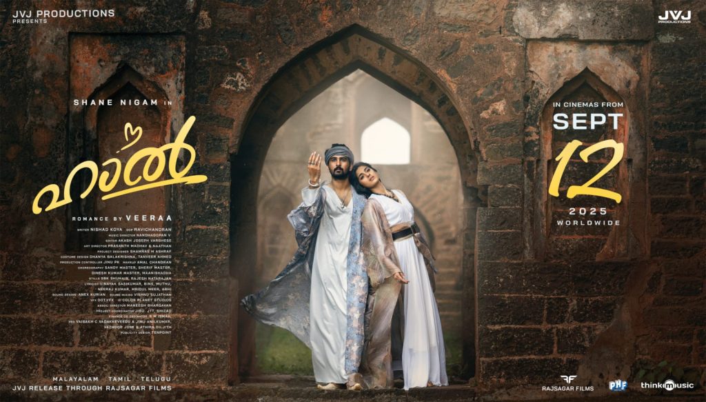 അഞ്ചു ഭാഷകളിലായി ഷെയ്ൻ നിഗത്തെ നായകനാക്കി വീരസംവിധാനം ചെയ്യുന്ന ഹാൽ എന്ന ചിത്രത്തിൻ്റെ റിലീസ് സെപ്റ്റംബർ പന്ത്രണ്ടിന് പ്രഖ്യാപിച്ചു കൊണ്ട് പോസ്റ്റർ പുറത്തുവിട്ടു.