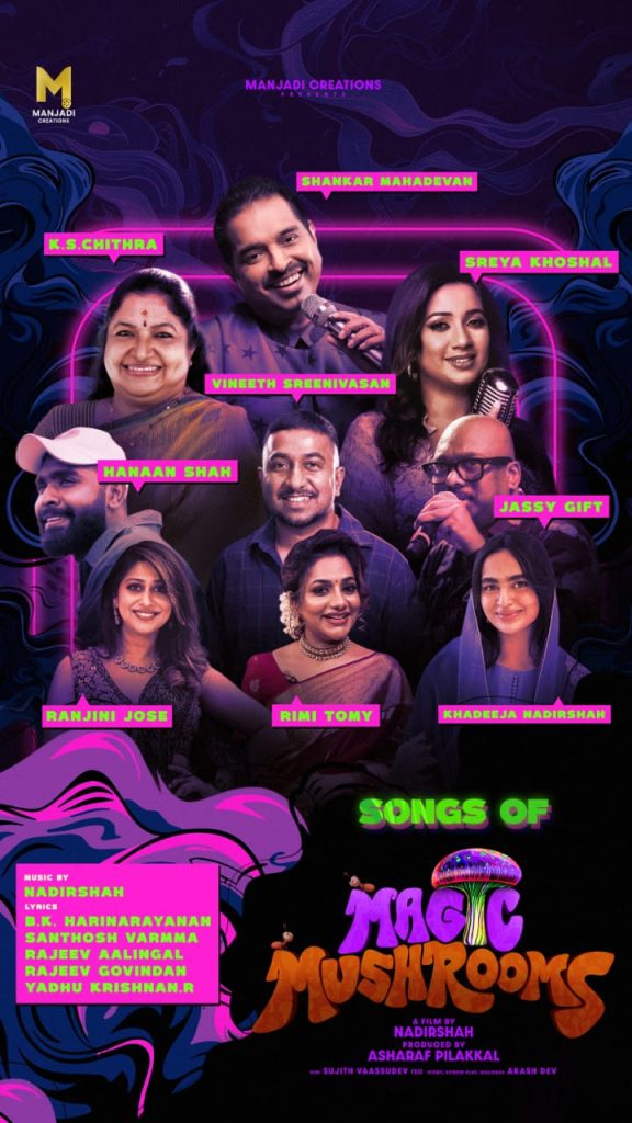 ഒരു പക്ഷെ ഇത്രയും പ്രശസ്ത ഗായകരുടെ സംഗമം ഉണ്ടാകുന്ന ഒരു ചിത്രം സമീപകാലത്ത് മാജിക് മഷ്റൂം തന്നെയെന്നു തന്നെ പറയാം.