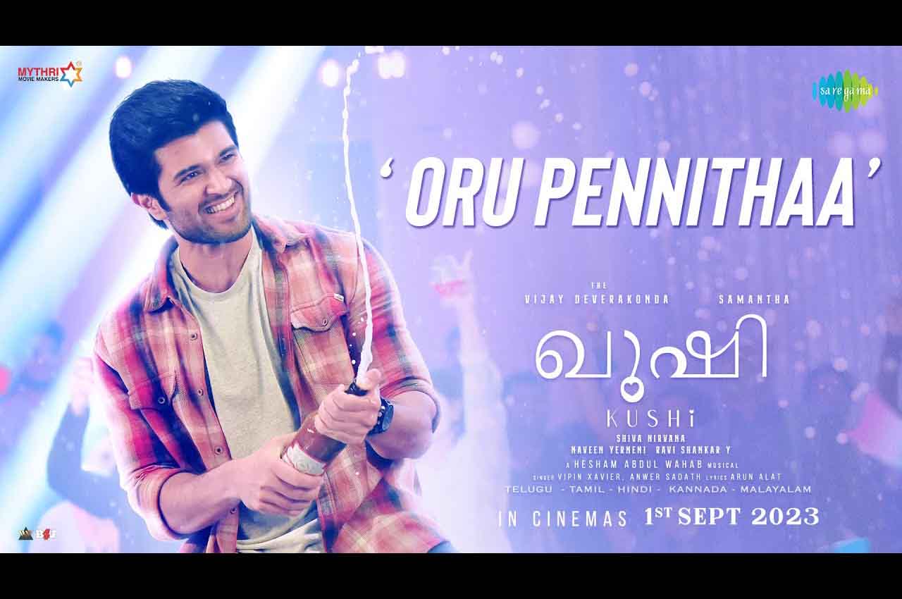 പ്രേക്ഷകര് പ്രതീക്ഷയോടെ കാത്തിരിക്കുന്ന വിജയ് ദേവരകൊണ്ട, സാമന്ത ചിത്രം ‘ഖുഷി’യിലെ അഞ്ചാമത്തെ ഗാനം പുറത്തിറങ്ങി. ‘ഒരു പെണ്ണിതാ’ എന്നു തുടങ്ങുന്ന ഗാനത്തിന്റെ സംഗീതസംവിധാനം മലയാളികളുടെ സ്വന്തം ഹിഷാം അബ്ദുള് വഹാബാണ്. അരുണ് ആലാട്ടിന്റെ വരികള് ആലപിച്ചിരിക്കുന്നത് അന്വര് സാദത്തും വിപിന് സേവ്യറും ചേര്ന്നാണ്. ഓരോ ഭര്ത്താക്കന്മാര്ക്കും ആസ്വദിക്കാവുന്ന ഗാനം എന്ന വിശേഷണത്തോടെ പുറത്തിറങ്ങിയ ഗാനം മികച്ച പ്രേക്ഷകാഭിപ്രായമാണ് നേടുന്നത്. ആരാധ്യ എന്ന നായികാകഥാപാത്രത്തെ വിവാഹം കഴിച്ച നായകന് വിപ്ലവിന്റെ വിവാഹശേഷമുള്ള കഷ്ടപ്പാടുകളെപ്പറ്റിയുള്ള പാട്ട് ശ്രോതാക്കള് ഇരുകയ്യും നീട്ടി സ്വീകരിച്ചുകഴിഞ്ഞു. വിജയ് ദേവരക്കൊണ്ടയുടെ ഗംഭീര ഡാന്സ് സ്റ്റെപ്പുകളും ഗാനത്തിന്റെ മാറ്റു കൂട്ടുന്നുണ്ട്.