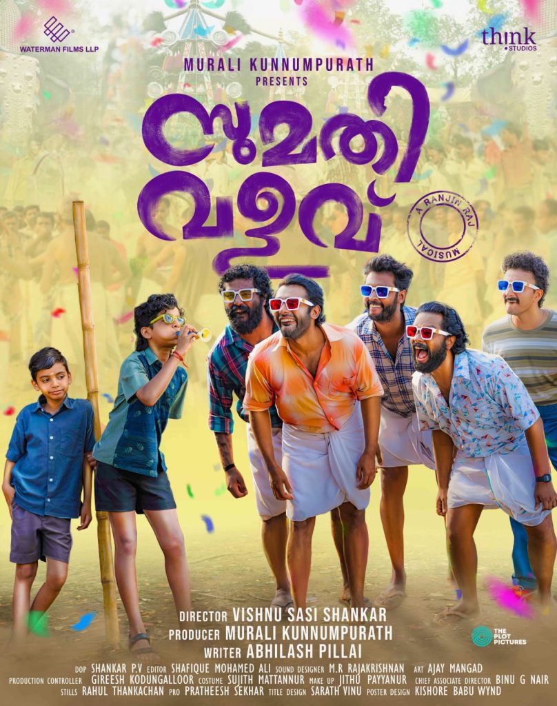 മലയാളത്തിലെ ജനപ്രിയരായ ഒരു സംഘം അഭിനേതാക്കൾ കൂളിംഗ് ഗ്ലാസ്സും ധരിച്ച് പൊട്ടിച്ചിരിയോടെ സന്തോഷത്തിൻ്റെ മുഹൂർത്തങ്ങൾ പങ്കിടുന്ന കനതുകകരമായ പോസ്റ്ററോടെ സുമതി വളവ് എന്ന ചിത്രത്തിൻ്റെ ഫസ്റ്റ് ലുക്ക് പോസ്റ്റർ പുറത്തുവിട്ടിരിക്കുന്നു. വിഷ്ണു ശശിശങ്കർ സംവിധാനം ചെയ്യുന്ന ഈ ചിത്രത്തിൻ്റെ ചിത്രീകരണം പാലക്കാട്ടെ കൊല്ലങ്കോട്, നെൻമാറ, ഗ്രാമങ്ങളിലും, പൊള്ളാച്ചിയിലുമായി നടന്നു വരുന്നു.
